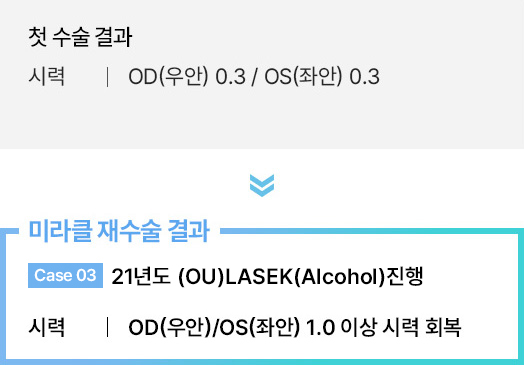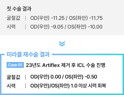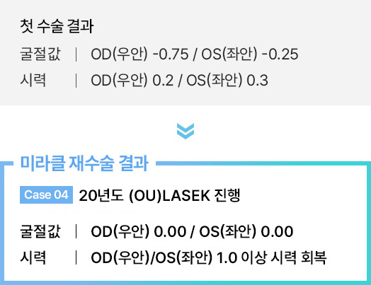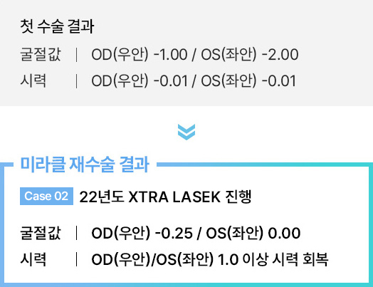 The reasons for re-correction are not common, and each patient’s reasons vary. Therefore, it’s recommended to undergo the procedure with a medical team with extensive experience in re-correction surgery. Samsung Miracle performs surgeries performed by ophthalmologists with over 10 years of experience, drawing on their expertise and expertise accumulated over many years.